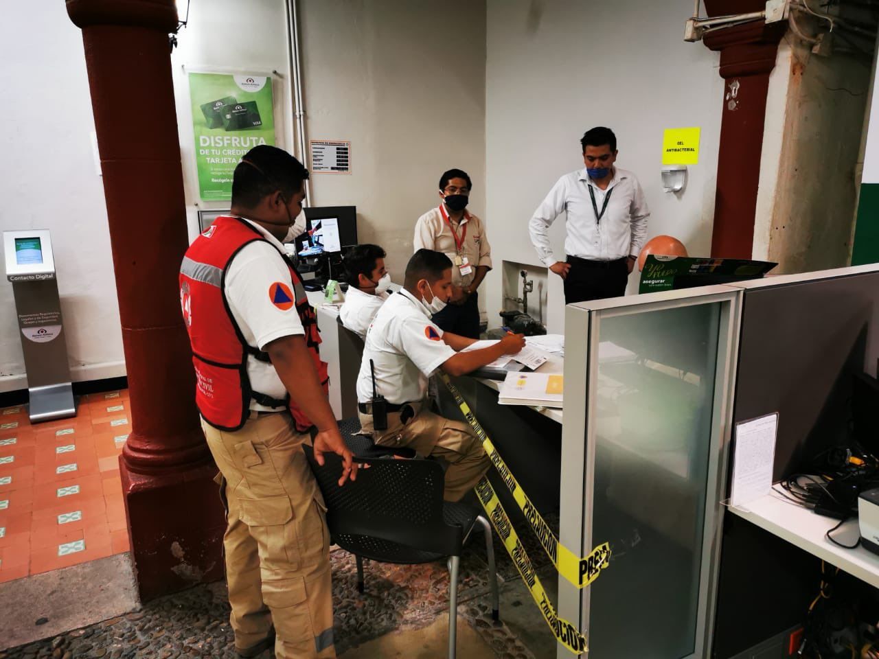 El mensaje estuvo acompañado por una serie de fotografías en las que se aprecia a personal de Protección Civil (PC) al interior de la sucursal mientras llena una serie de documentos. En otra imagen, se puede observar el exterior de las instalaciones, donde lucen los letreros de clausura colgados en la puerta.