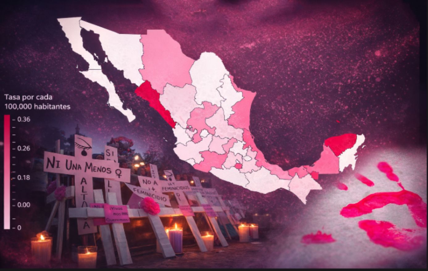 Autoridades estatales informaron que, entre enero de 2012 y junio de 2016, 9,581 mujeres fueron asesinadas de forma violenta en todo el país, pero solo 1,887 de esos crímenes fueron tipificados como feminicidios, lo que representó apenas el 19%.