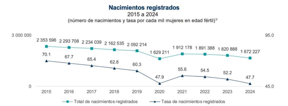 En la última década, se ha observado una disminución en la cantidad de hijos que las mujeres están teniendo en comparación con hace diez años. Recientemente, el Instituto Nacional de Estadística y Geografía (INEGI) publicó la Estadística de Nacimientos Registrados (ENR), revelando que en 2024 se registraron un total de 1 millón 672 mil 227 nacimientos en el país, lo que representa un descenso de 4.5 puntos en relación con la tasa reportada en 2023.