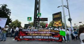 Tras perder sus pensiones doradas, un grupo de jubilados de Pemex, CFE, Banobras y Luz y Fuerza del Centro se manifiesta en Paseo de la Reforma