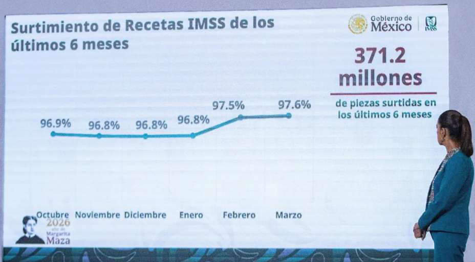 Robledo Aburto detalló que entre octubre de 2025 y marzo de 2026 se surtieron 371.2 millones de piezas en 1,513 farmacias del IMSS, a partir de atenciones en 18,000 consultorios, incluyendo Unidades de Medicina Familiar, hospitales y Unidades Médicas de Alta Especialidad. Esta medición se basa en el número de recetas emitidas y las efectivamente surtidas.